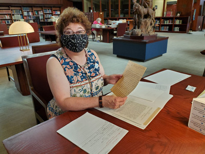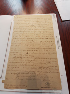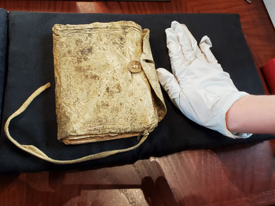 This week, I’d like to present some of the fantastic documents I read there, studied, and even held in my hands. As you look over these photos, you may be surprised that I’m not wearing rubber gloves. Archivist Molly Kodner did when handling William Clark’s elk-skin journal, which is as much an artifact as it is a priceless historical document. However, I was told that when it comes to antique documents, rubber gloves can cause some people to accidentally tear or ruffle pages more easily since it can inhibit one's sense of touch. Therefore, I handled these documents as carefully as I could—bare-handed.
